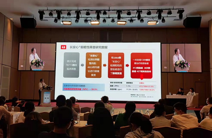 廣東省人民醫(yī)院協(xié)和醫(yī)療中心主任、廣東省醫(yī)院協(xié)會醫(yī)院健康管理專委會主任委員陳煉以《中國癌癥早篩的機(jī)遇與挑戰(zhàn)》為題作主題演講時(shí),重點(diǎn)介紹了糞便SDC2基因甲基化PCR檢測對結(jié)直腸癌早期診斷的效果。