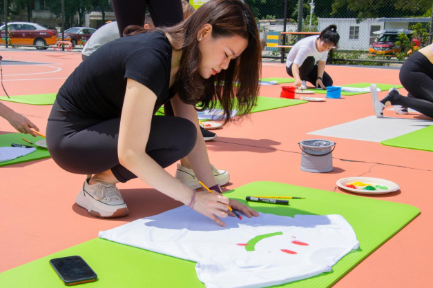 參與活動的普拉提愛好者,還提起畫筆,一起在T恤上留下了各種創(chuàng)意的涂鴉,以表達(dá)自己對于“愛,要趁早”、“健康與運動”的理解。