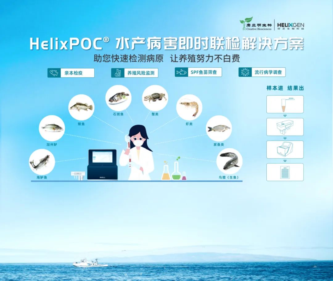 好芝生物以水產(chǎn)養(yǎng)殖病害防治為切入點(diǎn),以養(yǎng)殖物種為檢測(cè)服務(wù)單元,提出水產(chǎn)病害即時(shí)聯(lián)檢解決方案。產(chǎn)品基于HelixPOC®全自動(dòng)微流控核酸檢測(cè)一體機(jī)、水產(chǎn)病害核酸檢測(cè)試劑盒,針對(duì)水產(chǎn)不同細(xì)分種類(lèi)的病害,實(shí)現(xiàn)樣本進(jìn)、結(jié)果出的全自動(dòng)化流程,無(wú)需專(zhuān)業(yè)操作人員及實(shí)驗(yàn)室,滿(mǎn)足現(xiàn)場(chǎng)快速需求,面向規(guī)?;?、集約化的水產(chǎn)養(yǎng)殖基地、種苗基地、水產(chǎn)檢測(cè)中心等場(chǎng)景。檢測(cè)水產(chǎn)養(yǎng)殖物種涵蓋南美白對(duì)蝦、羅氏沼蝦、克氏原螯蝦、小龍蝦、青蟹、鱖魚(yú)、加州鱸、海鱸魚(yú)、石斑魚(yú)、金鯧魚(yú)、草魚(yú)、烏鱧、鯽魚(yú)等 。