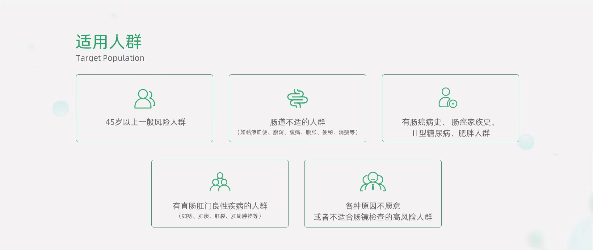 腸癌無創(chuàng)檢測破冰之作,2018年率先獲批上市,僅需在家采集4.5克糞便樣本,即能實(shí)現(xiàn)變異基因抓取,幫助發(fā)現(xiàn)患者早期腸癌病變情況。